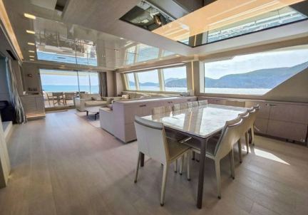 Geniş iç hacmi ve “wide-body” tasarımı sayesinde salon ve yaşam alanları son derece ferah olup, panoramik camlar sayesinde gün ışığı maksimum seviyede içeri alınır. İç mekanda kullanılan yüksek kaliteli malzemeler ve özel tasarım detaylar, tekneye gerçek bir süperyat hissi kazandırır.